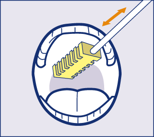 スポンジブラシを咽頭につきあてないように注意して、上あごの奥から手前に向けて動かし汚れをとります。