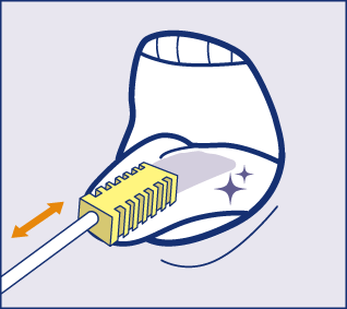スポンジを回転させたり前後に動かし、歯ぐきやすき間の汚れを取ります。